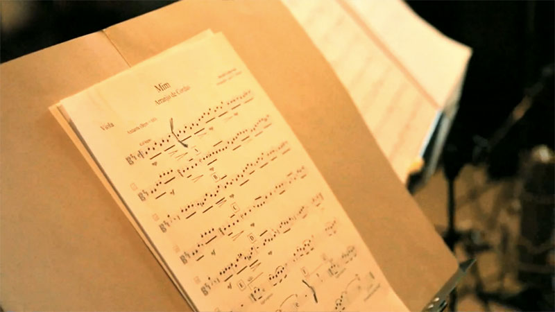 Neste link você tem acesso às partituras dos violões, transcritas com maestria por Diogo Carvalho. Neste outro, tem acesso aos primorosos arranjos de cordas do Maestro Luís E. Corbani.